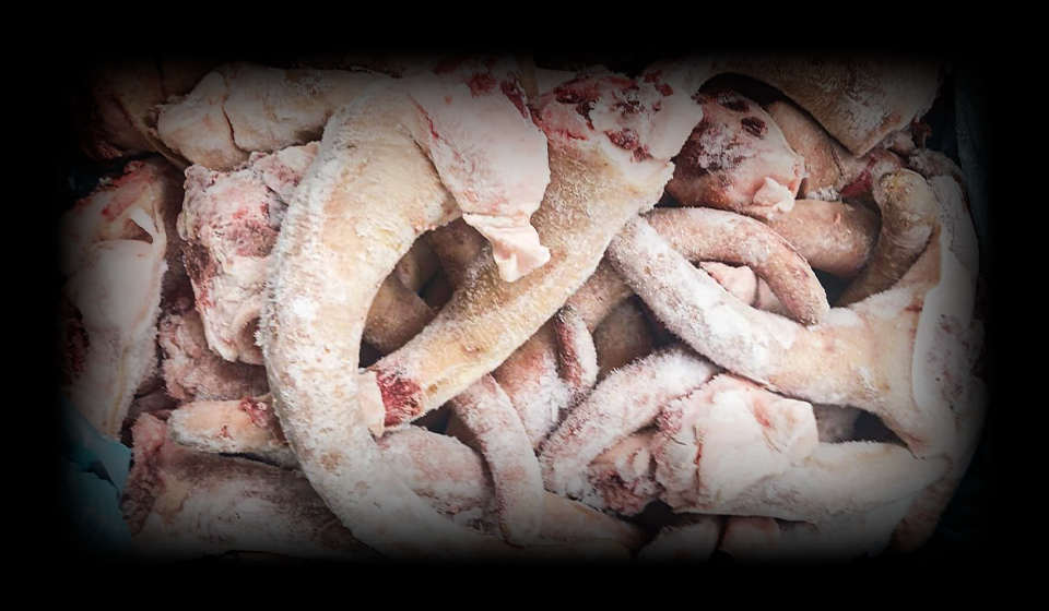 Estas piezas incluyen la pezuña y parte del hueso de la extremidad, recubiertas aún con piel y tejido conjuntivo.